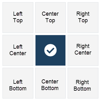 The following image shows the Center From selection area with the default selected (Center, Center). Once you select a focal square, the background image will be displayed in the preview using this setting. When the image is displayed on a smaller screen, the focal point will align with the area of the grid that you selected.