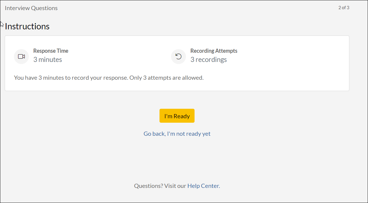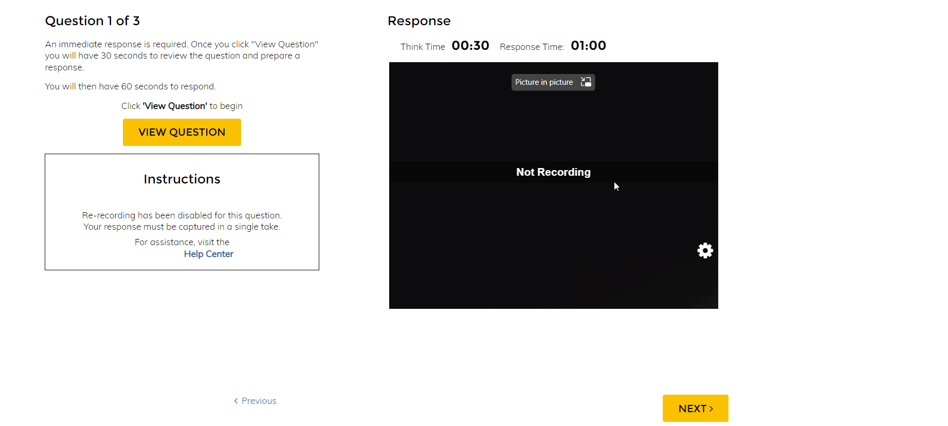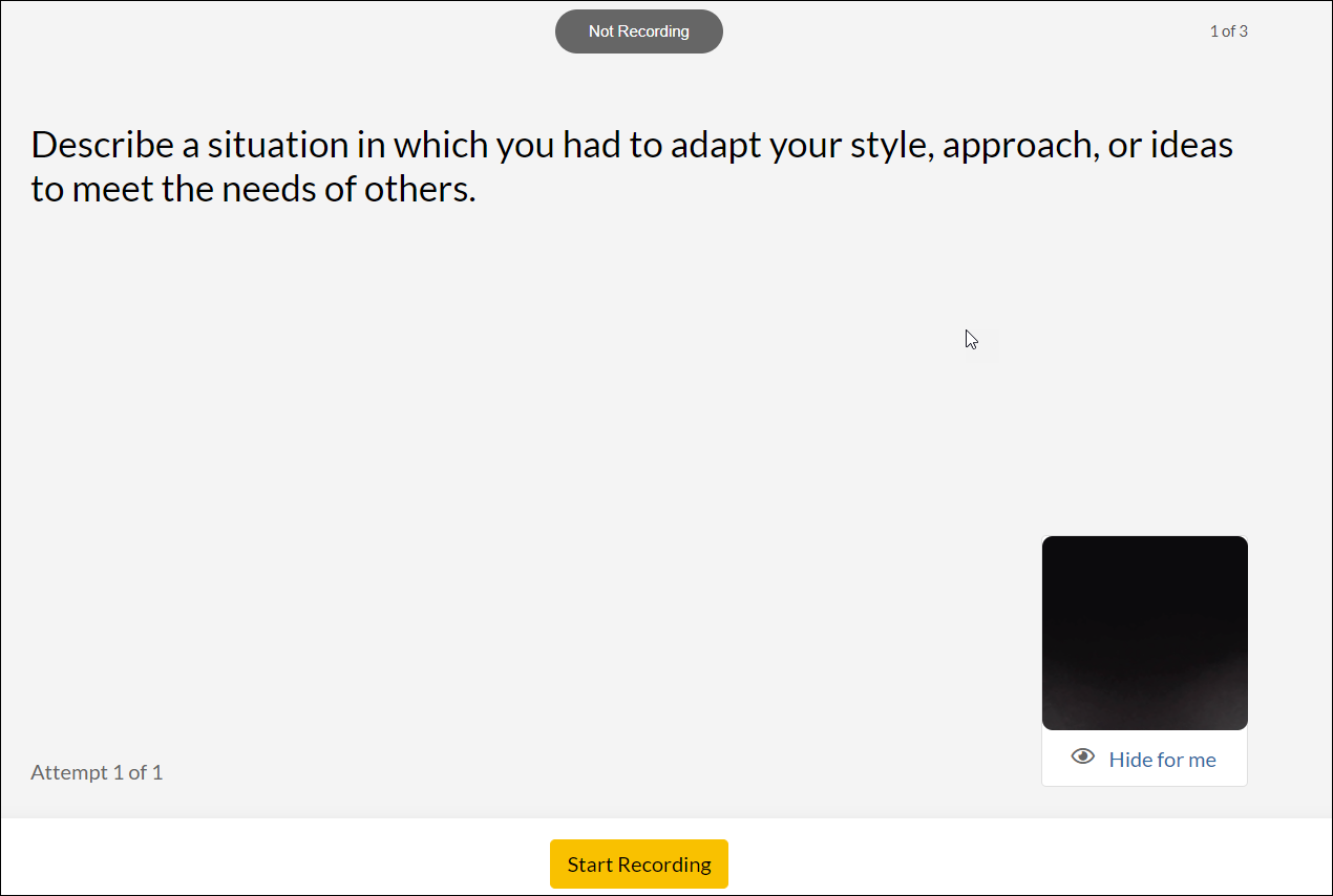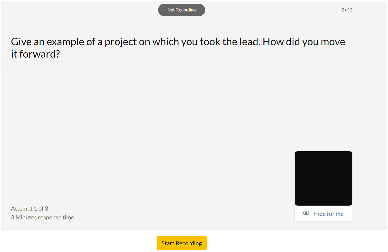 Below is an example of the candidate experience when you select the Two Retakes recording mode.