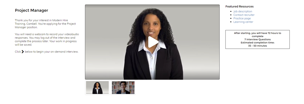 See an example of how the welcome video appears to candidates