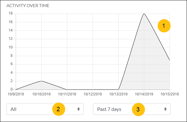 The Activity Over Time chart displays the number of interviews that you have either requested or scheduled during the specified time period. You can refer to this chart for an overview of your recruiting activity during a specific time period.