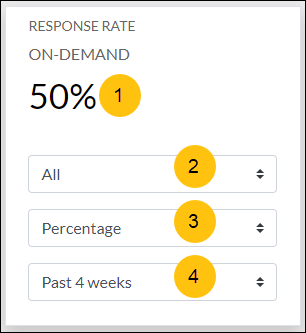 The response rate on-demand tile displays the number or percentage of candidates that responded to your requests for on-demand interviews and that submitted their interviews successfully during the specified date range.