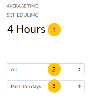 Date range for which the average scheduling time is calculated. You can select one of the preset date ranges (Past 7, 30, or 365 days), or you can select Custom to create your own date range.